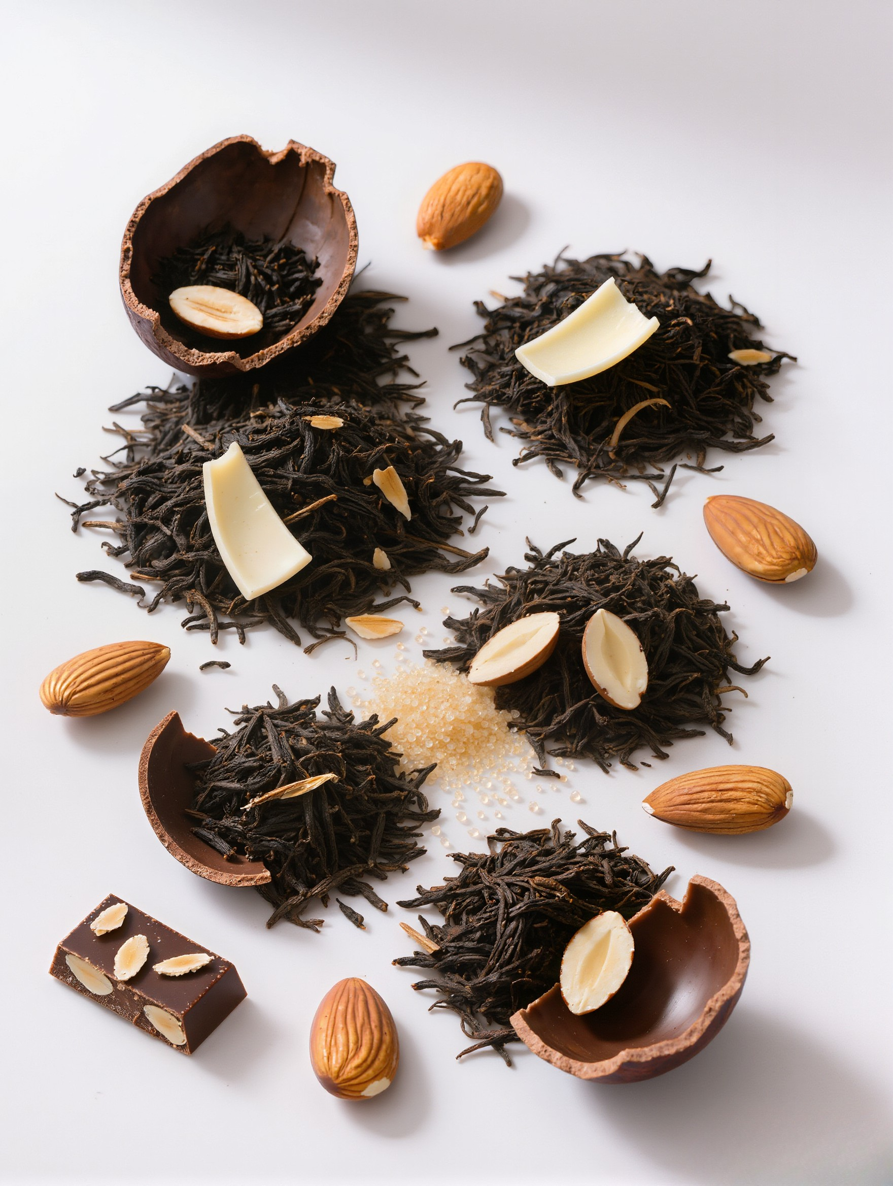 Ingredients: Premium Black Tea, Natural chocolate and brownie flavouring, cocoa shell, white chocolate, and almonds