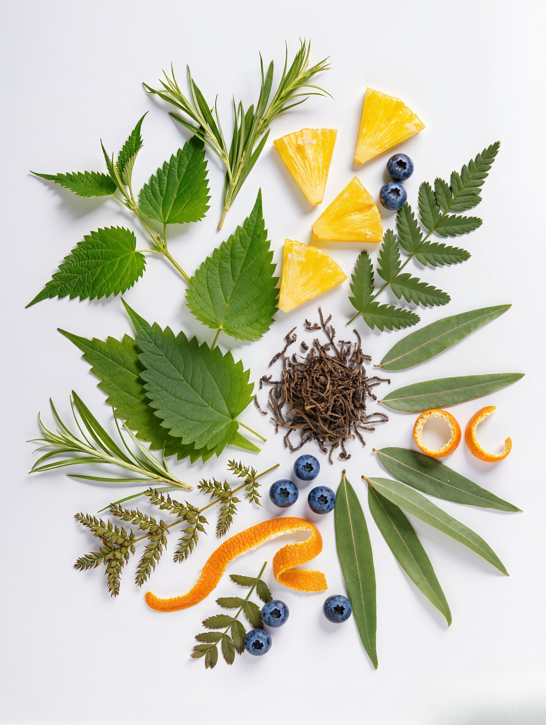 Ingredients: Premium Green Tea leaves, nettle, horsetail, pineapple, orange peel, olive tree, freeze-dried blueberry