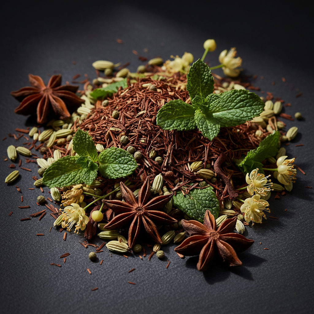 Flavor Profile: Earthy rooibos base with aromatic, sweet notes, and citrus brightness. Deliciously clean and comforting.